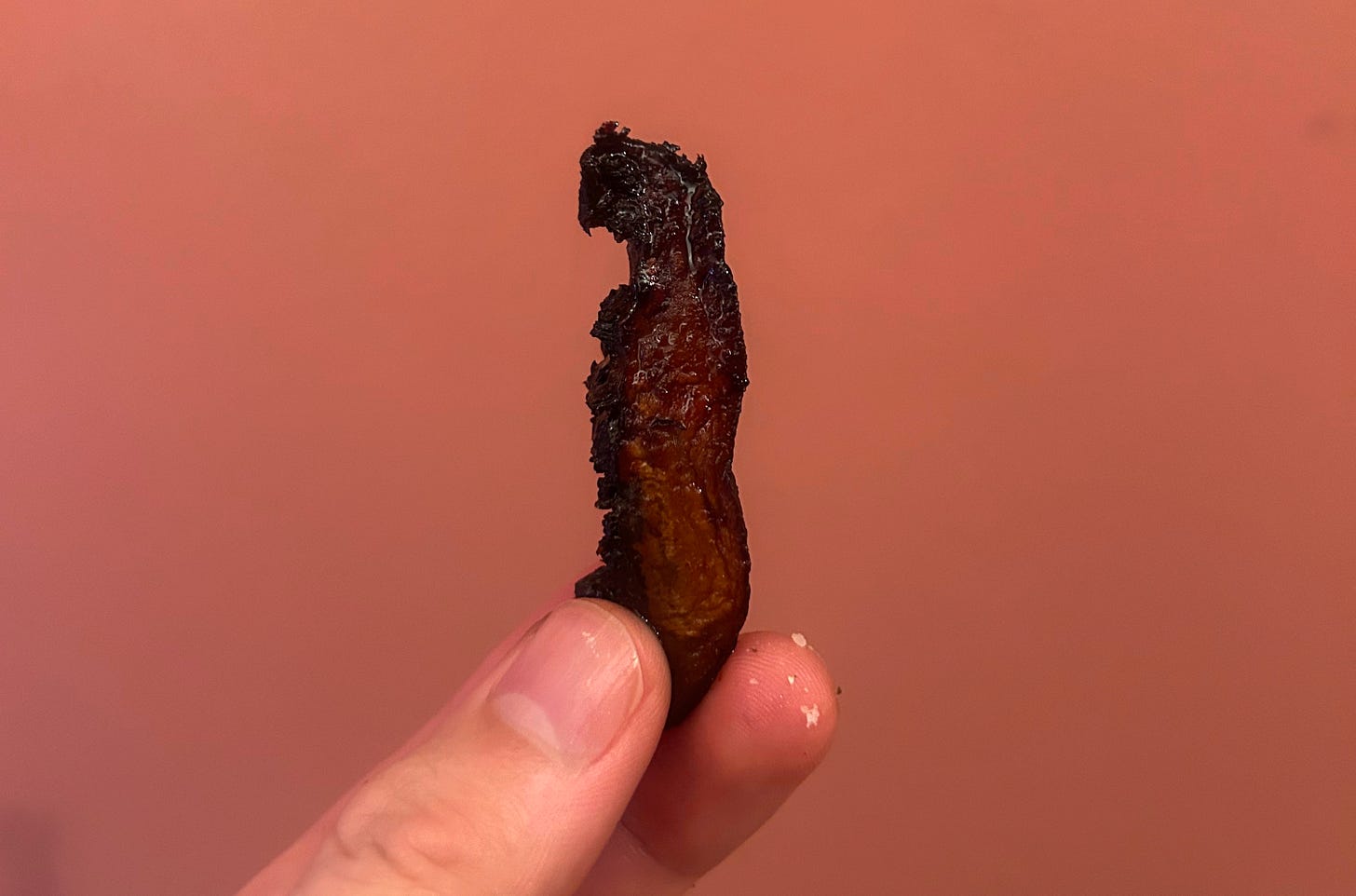 Add salt, olive oil, smoked paprika and soy sauce to sliced portobello mushrooms. Arrange on a baking trays atop parchment paper and bake at 180 degrees until the edges start to crisp (maybe around half an hour but potentially more depending on your oven – option to switch to high temperature grill towards the end). As I said earlier, it’s hard to mess this up – burnt mushrooms taste good. I have posted a picture of my ideal mushroom i.e. cremated. You may differ.